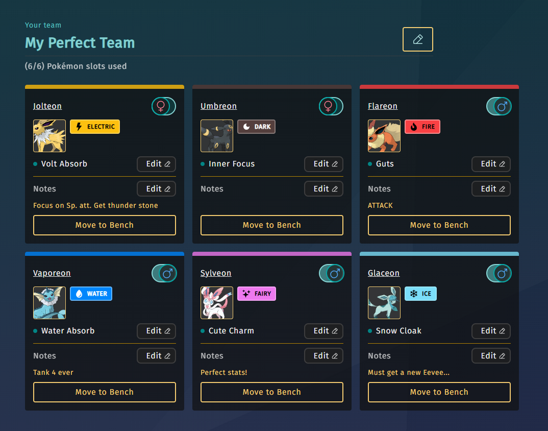Your team is only stored locally in your browser’s cache on your own device. It’s not saved in any database. So if you switch browsers or clear your cache, you’ll lose your team (but don’t worry—it’s easy to set up again). If you’d like to see this expanded with user profiles and the ability to save your settings permanently, just send over a couple of months’ salary and I’ll get right on it! 😉 But seriously—I’d love to build that in the future.